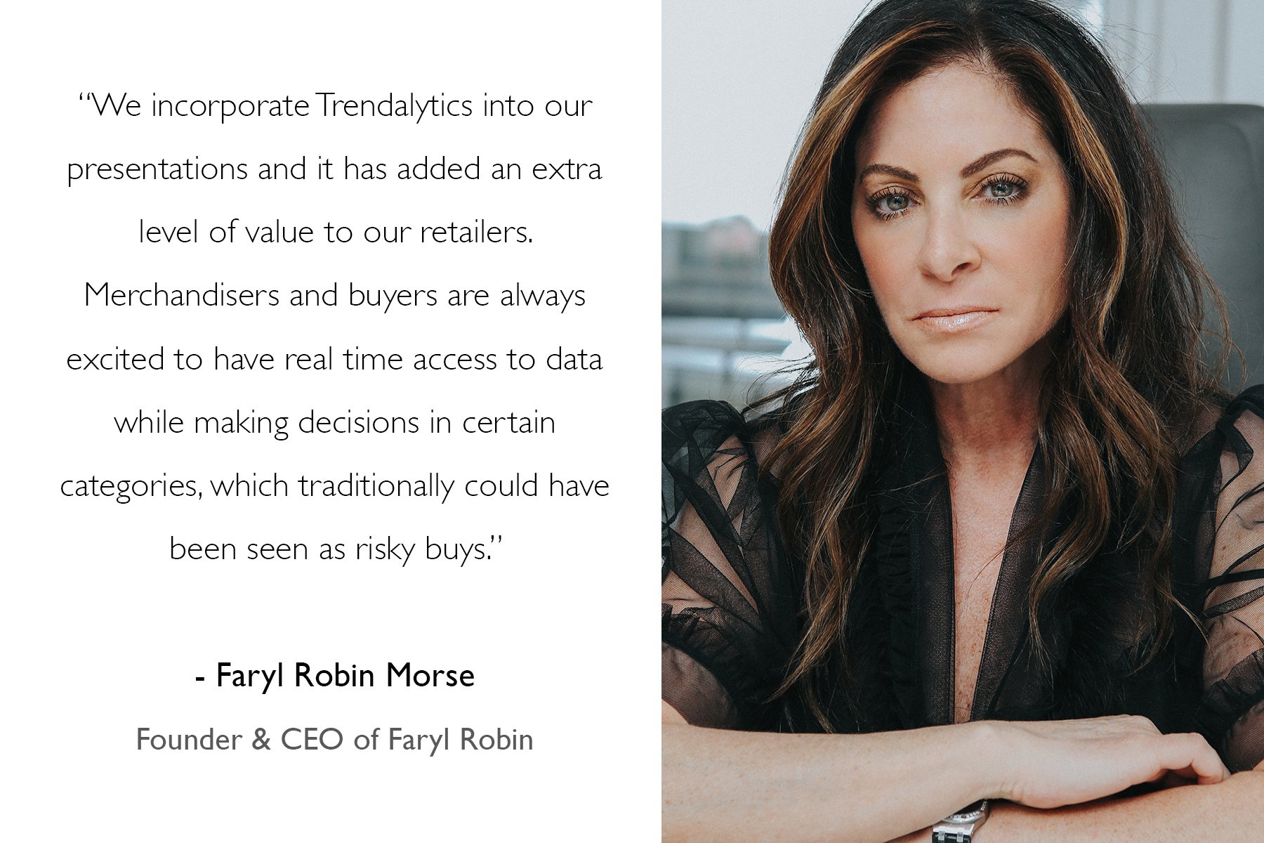 We incorporate Trendalytics into our presentations and it has added an extra level of value to our retailers. Merchandisers and buyers are always excited to have real time access to data while making decisions in certain categories, which traditionally could have been seen as risky buys. It opens up more white space opportunities by validating our point of view.