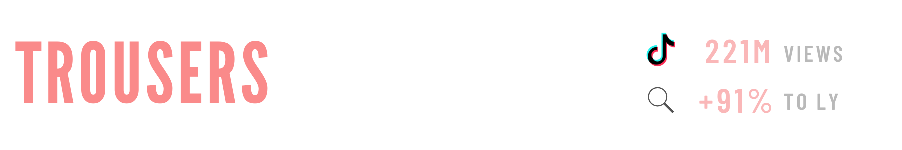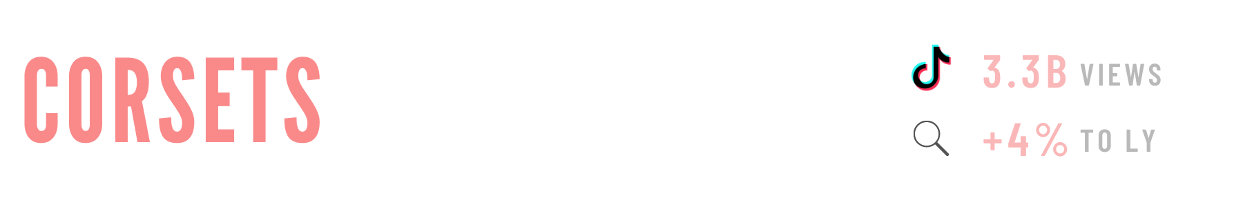 Currently reigning supreme, corsets are an extreme search volume trend with 300K average weekly searches, +4% to last year. After two years of ditching bras and lounging in leggings, many openly welcome this sense of structure in their wardrobes. A presence on the runway this season, designers reinvented this feminine staple by adding leather, sheer exposure, and lace up details.