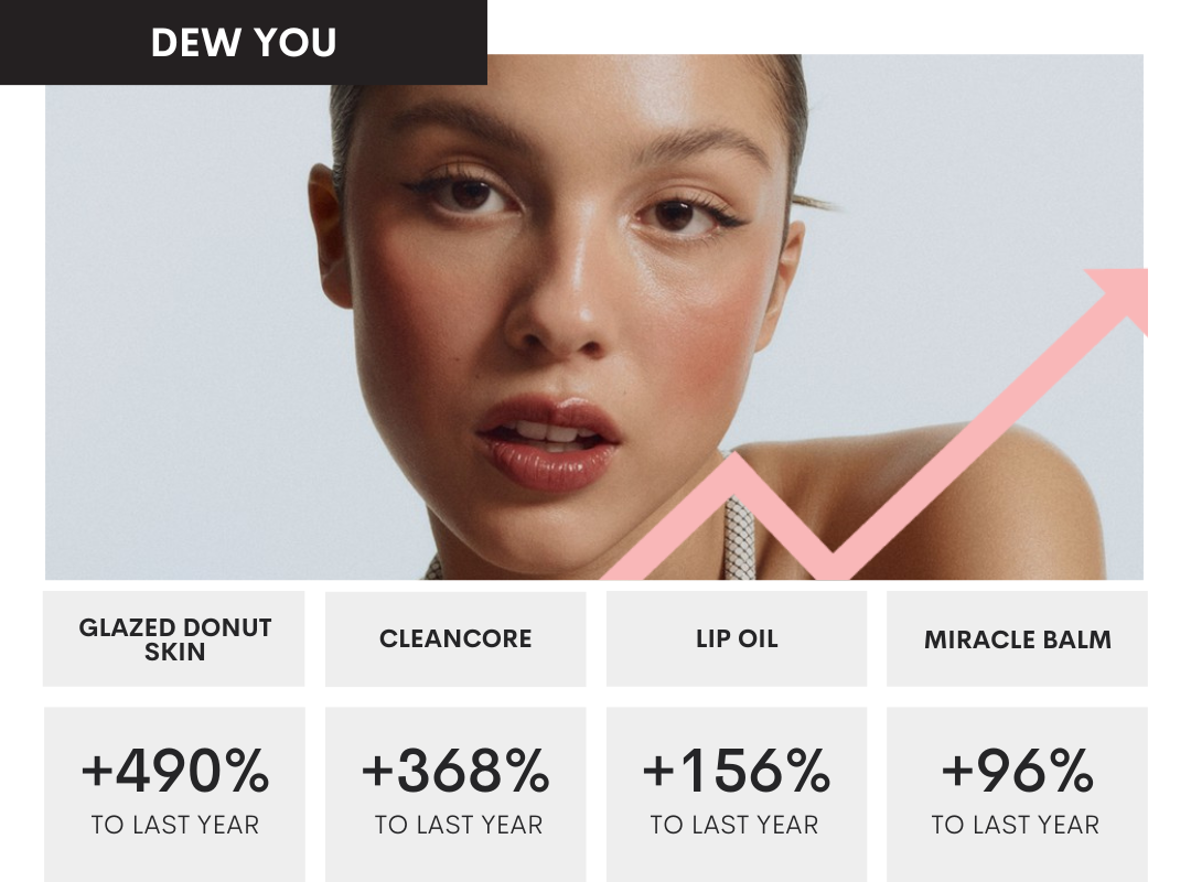 Garnering 50 million views on TikTok and 368% increase in searches to last year, cleancore is the latest update to minimalist beauty. While it embraces skincare with glazed donut skin (+490% to LY thanks to Hailey Bieber), the dewey aesthetic promotes a natural finish well-suited for the summer months that’s even reflected in the rise of products like lip oil (+156% to LY) and the buzzy miracle balm (+96% to LY) that’s getting more life being used in slicked hair.